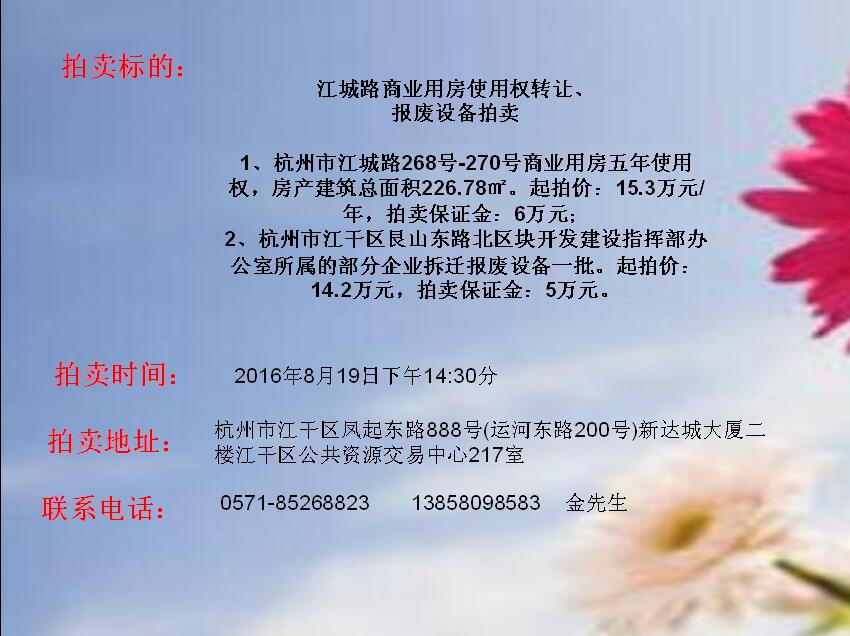 江城路商業用房使用權轉讓、報廢設備拍賣