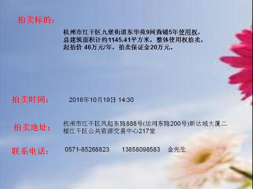 江干區九堡街道東華苑部分商鋪5年使用權轉讓拍賣