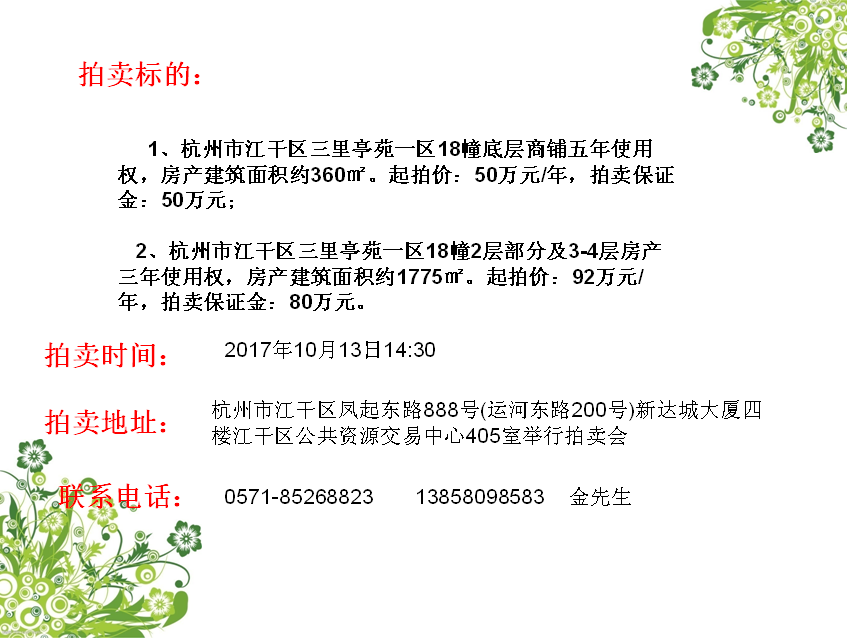 永盛拍賣熱線:0571-85268823