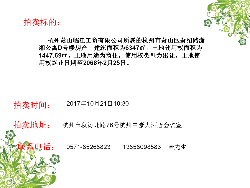 永盛拍賣熱線:0571-85268823