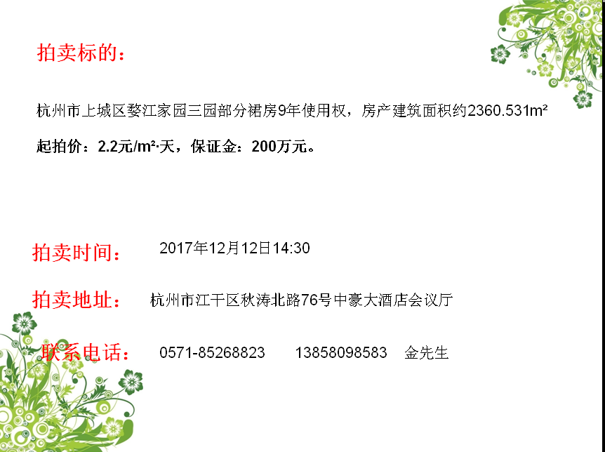 浙江永盛拍賣有限公司 地 址:杭州市江干區(qū)景壇路279號(hào)A座13樓1301室(四季青國際輕紡城) 電 話:0571-85268823,0571-85268825/E-Mail:mail.yshpm.com Copyright(c)2007-2009 by yshpm.All rights reseved 備案序號(hào): 浙ICP備18042436號(hào) |