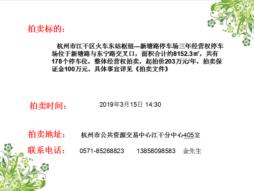 杭州市江干區火車東站樞紐—新塘路停車場三年經營權