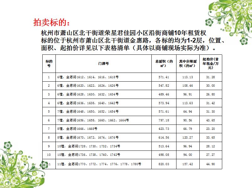 杭州市蕭山區北干街道榮星君佳園小區沿街商鋪10年租賃權