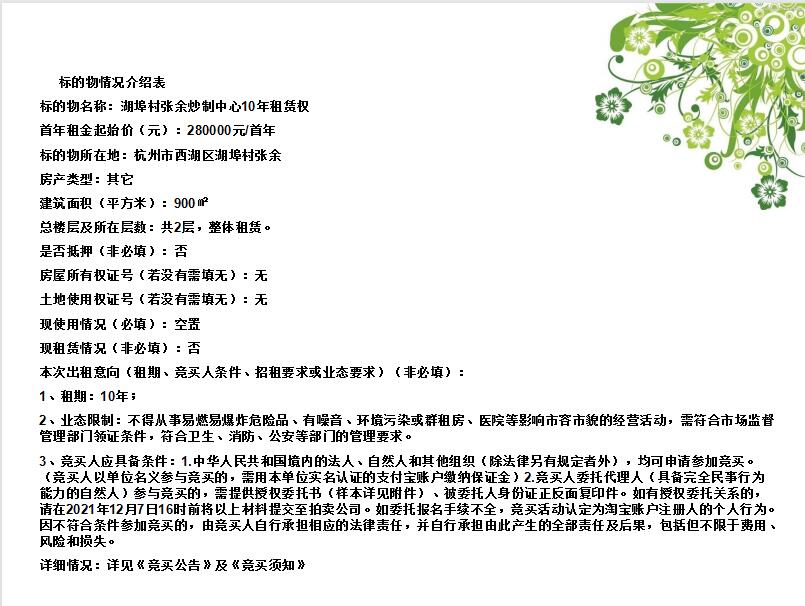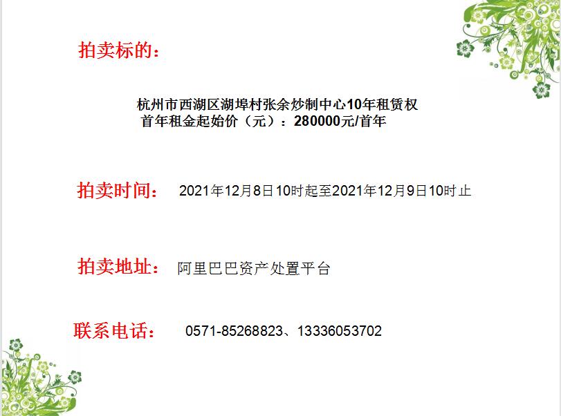 杭州市西湖區湖埠村張余炒制中心10年租賃權
