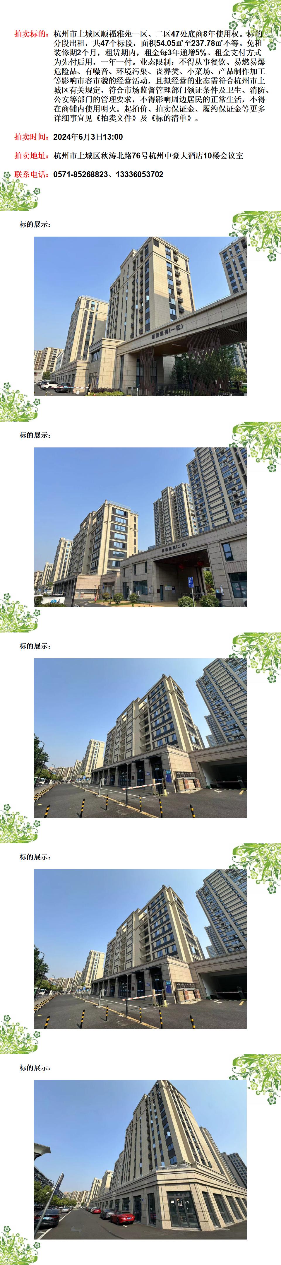 杭州市上城區順福雅苑一區、二區47處底商8年使用權