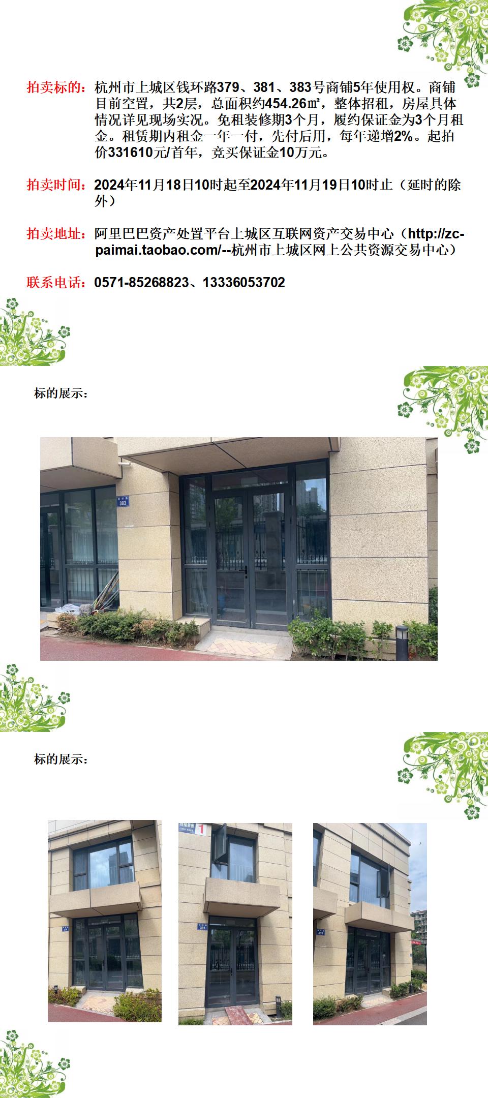 杭州市上城區錢環路379、381、383號商鋪5年使用權