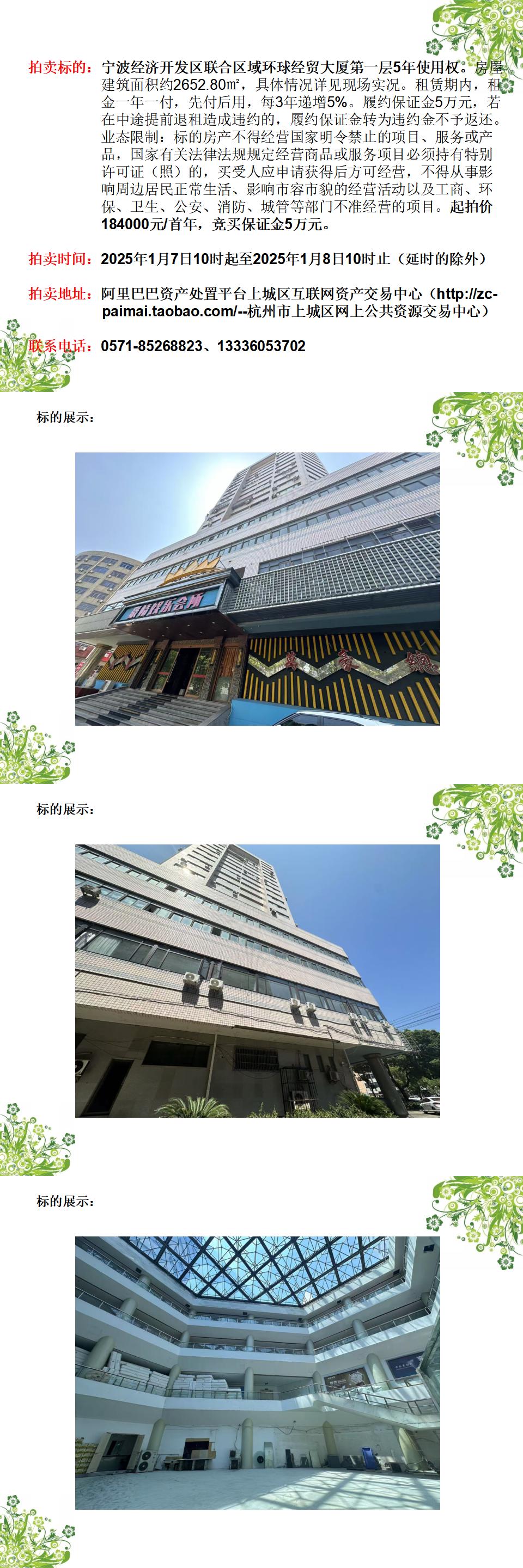 寧波經(jīng)濟開發(fā)區(qū)聯(lián)合區(qū)域環(huán)球經(jīng)貿(mào)大廈第一層5年使用權