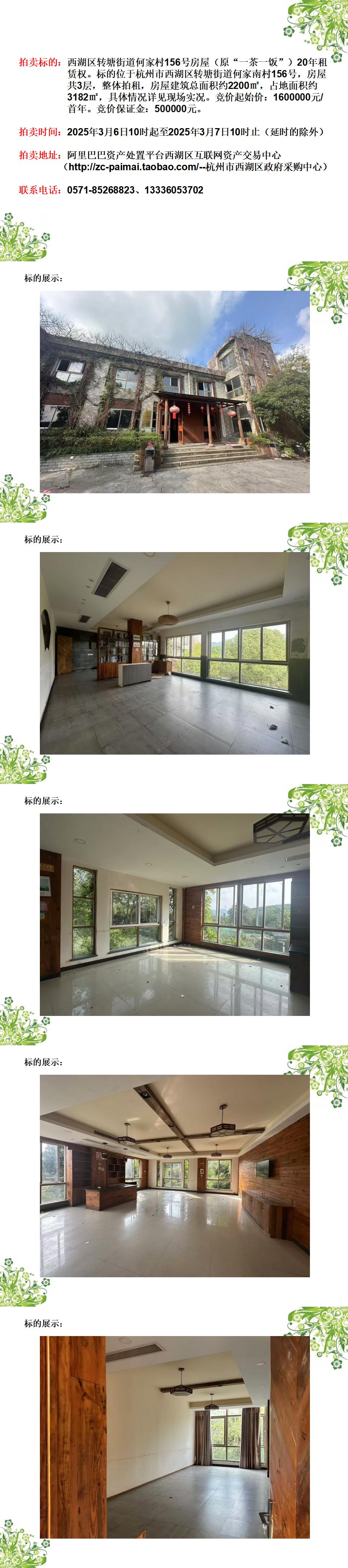 西湖區轉塘街道何家村156號房屋(原“一茶一飯”)20年租賃權