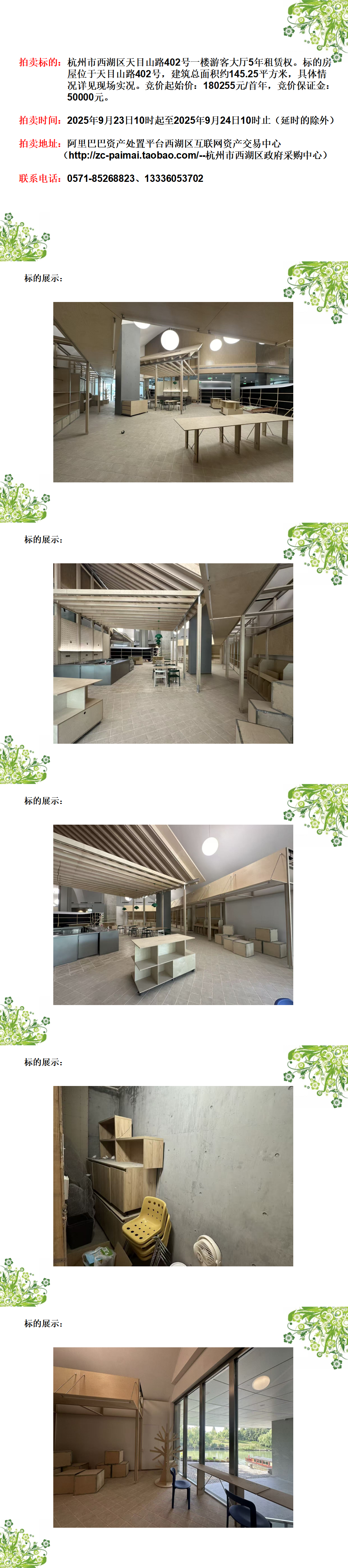 杭州市西湖區天目山路402號一樓游客大廳5年租賃權