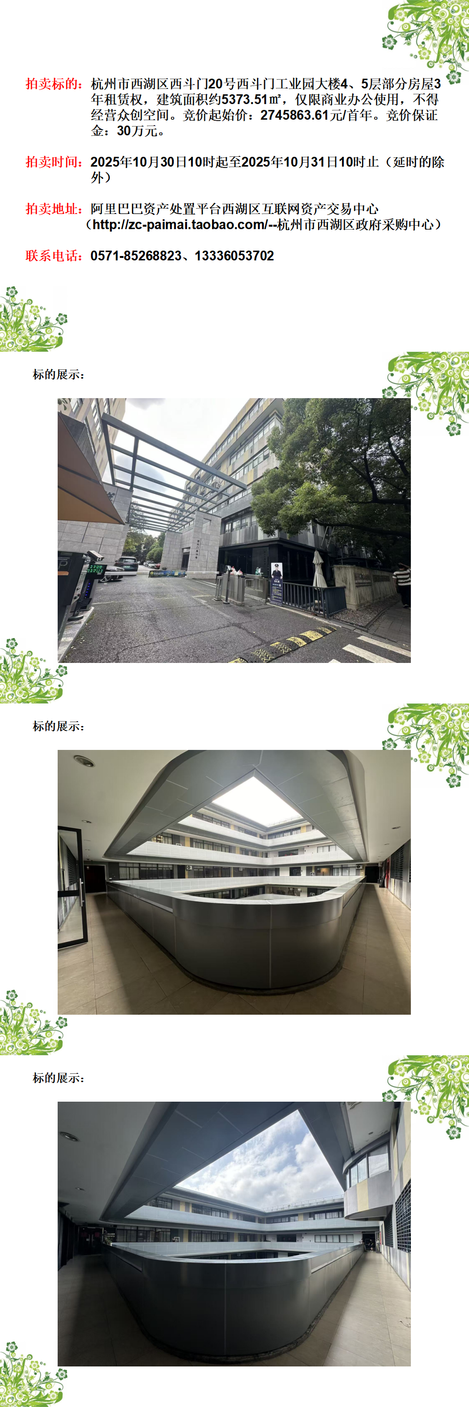 西湖區西斗門20號西斗門工業園大樓4、5層部分房屋3年租賃權